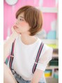 耳横にふんわりワンカールの丸みを持たせることで、ショートレングスでもボーイッシュにならず、リラクシーでガーリーな雰囲気に。明るいカラーをオンすれば元気な笑顔弾けるポップな印象に♪斜めバングで目力もUP!計算された似合わせカットの技が光ります☆