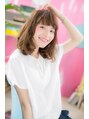 作り込み過ぎないニュアンスカールがラフで優しい雰囲気を実現。厚めバングをオンすることで、ラブでガーリーな印象になりぐんとポップに♪透明感あるツヤカラーで顔周りを明るくすれば、親しみやすい愛されふわミディの完成です。耳かけも似合います。