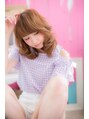 とびきりキュートな愛されフェイスを作る、モテ要素満載のガーリーミディ。厚めバングとサイドの毛流れで小顔に見せて、オレンジ系の明るいカラーで顔周りを華やかに。ふわっふわのソフトカールでお人形さんのような甘さを出せば、最強のラブヘアに☆