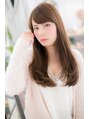 厚めにとった斜めバング&毛先のほんのり内巻きワンカールのシンプルなストレートロング。深みあるイノセントカラーで、重めスタイルをこっくりと落ち着いた雰囲気に仕上げます。サイドのレイヤーで顔を包み込み小顔バランスに。厚めバングで目力もUP!