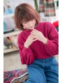 斜めバングと内巻きワンカールのノームコアなナチュラルボブ。清楚でフェミニンな雰囲気のスタイルにパンチの効いたレッド系カラーをオンすることで、個性的でスポンテニアスな甘辛ミックスボブにイメチェン。フリンジバングと合わせて旬顔に。耳かけも◎