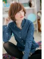 毛先にルーズなカールをつけて、ひし形フォルムに仕上げた美人顔ミディ。顔周りのふんわりワンカールで小顔に見せ、サイドに流した斜めバングで目力UP。大人ビューティなスタイルは、明るいミルクティカラーやベージュカラーでカジュアルにして親しみやすく。
