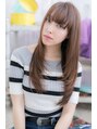 毛先のレイヤーでニュアンス感ある動きを出したツヤ感ストレート。縦長フォルムで小顔見せ効果とスタイルアップ効果。長めのシースルーバングで目力UP。ベージュカラーやグラデーションカラー、外国人風3DカラーでグラマラスにイメチェンしてもGOOD。
