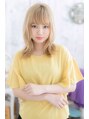 派手に見られがちなハイトーンの金髪スタイルは、くせ毛風外ハネカールのナチュラルセミディでリラクシーな雰囲気。顔周りを明るくして肌色キレイにやわらかく仕上げます。斜めバングや厚めバングで目力UPしたり、前下がりで小顔見せや耳かけも大人かわいい。
