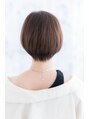 前下がりで輪郭をカバーして小顔見せ効果を狙ったナチュラルボブ。ダークトーンの潤いたっぷりツヤカラーで透明感を出し、男女問わず人気の好感度大の万能スタイルに。耳かけしてアシンメトリーにしたり、センターパートでクラシカルにしても大人かわいい。