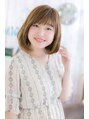 毛先のワンカールと前下がりラインで小顔に見せたナチュラルミディ。切りっぱなしボブのようなラフ感と明るいベージュカラーで、ラブカジュアルな印象に☆オン眉や厚めバングで個性的ガーリーにしたり、センターパートで大人クールにイメチェンもOK♪