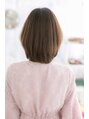 ナチュラルだけど女性らしい、大人かわいいフェミニンボブ。耳横にふわっとボリュームを持たせることでひし形シルエットに。顔の輪郭をキレイに見せてくれます。斜めバングで目力強調し、サイドの毛流れで小顔に。似合わせカットで美人顔にアップグレード♪