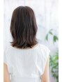 黒髪でクラシカルな印象にしつつ、肩のラインで揺らめく外ハネカールでカジュアルさもプラスしたくびれミディ。トップにふわっとボリュームを出してスタイルアップ効果。サイドの毛流れで輪郭カバーして小顔見せ。大人かわいいスタイルで男女問わず好感度UP。