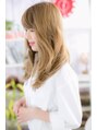 そよ風に吹かれたようなゆるめのカールでリラクシーな雰囲気に。Aラインシルエットでグラマラスにしつつ小顔に見せます。目の上ギリギリの斜めバングで目力UP効果もバッチリ。ハイトーンのグラデーションカラーで表情豊かにラグジュアリーに仕上げて☆