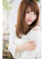 サラツヤワンカールストレートに、ツヤ感あるベージュカラーやミルクティカラーをON。顔周りを明るく華やかに♪あどけない印象の斜めバングで、甘え顔の似合う愛されスタイルに。耳かけでガーリーにしたり、姫カットでフェイスラインをカモフラージュしても◎