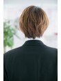 重め前髪で目元を印象つけたモード風の大人ショート。顔周りを引き締めて小顔効果もバッチリ。温かみのあるベージュカラーでカジュアルで優しい雰囲気に仕上げます。クールな黒髪からのイメチェンにもオススメ。トップをふわっと立ち上げてスタイルUP効果も。