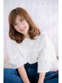 鎖骨ラインで揺れるエアリーカールがふんわり大人かわいいくびれミディ。顔周りのレイヤーでフェイスラインをカモフラージュして小顔に見せます。斜めバングで目元を強調して目力UP!モテフェミニンスタイル。ベージュカラーやミルクティアッシュで旬顔に♪