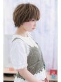 目の上ギリギリのトップからの厚めバングがポイント。目元を印象付けてぐっと目力UP☆くせ毛風カールを活かしつつ、ボリュームを抑えてスッキリ小頭フォルムに仕上げているのでスタイルUP効果も◎明るいベージュカラーとゆるふわカールでとびきりガーリーに♪