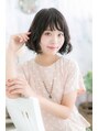 丸みあるフォルムでレディな雰囲気に仕上げたAラインのガーリーボブ。くせ毛風カールでふわっとボリュームを持たせることで小顔対策バッチリ。透け感ある斜めバングで目元を印象つけます。ナチュラルボブからイメチェンしたい方にオススメの好感度ヘアです。