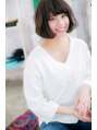 曲線をふんだんに使ってピュアな雰囲気に仕上げたエアリーボブ。前髪はもちろん、全体の毛先を内側にスイングさせて、しっとりまとめました。斜めバングやフリンジバングで透け感を出しながら目元を印象つけて。目力UPでガーリーな印象に。耳かけもカワイイ☆