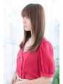 目の上ギリギリの厚めバングで目力強調。縦ラインを強調したワンカールストレートでスタイルアップ効果。グラデーションカラーやインナーカラーで外国人風グラマラスにしたり、ベージュカラーで顔周りを明るくして脱・重めスタイルに。耳かけも大人かわいい。