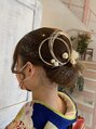 【成人式ヘアアレンジ】低めの位置にまとめ、質感を丁寧につくりました。トレンドの水引や金箔をあしらうことで華やかさを感じるスタイルになります。