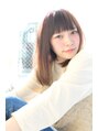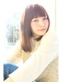 ナチュラルな厚めバングを斜めバングで横に流れるようにカット,つやつや美髪で極潤ローズトリートメントをしっかりして、大人可愛いワンカール。似合わせカットで段をつけすぎないナチュラルミディアムスタイルです。