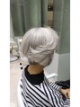 ベースはやや前下がりのショートボブスタイルです。えり足はレイヤーを入れて、トップとサイドにパーマをかけて、少しボリュームを出しました。