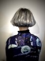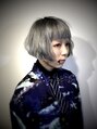 カットは前下がりに切りかっこよさを出しました。ブリーチをしてから、プラチナグレーをのせました。根元のブリーチ一回のところは全体よりも濃いグレーをのせています。