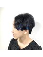 ハイトーンだったところから、サイドのインナーにブルー!全体はダークネイビーで黒っぽく仕上げました!これだけ黒っぽくしても、ベースが明るいのでまた金髪に抜けていきます。