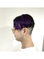 左サイドのインナーのみブリーチカラーをしています!ガッツリと刈り上げている個性派スタイル。 カラーバターでムラサキをのせました!