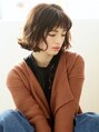 顎ラインのボブをベースに、ラフに揺れる毛先がカジュアルなパーマスタイル。眉上のシースルーショートバングで抜け感をプラス。カラーは8レベルのチョコレートブラウンに細かいハイライトを顔まわりにも。