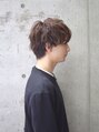 マッシュベースのレイヤースタイル。耳周りはすっきりして前髪は長め。スロントに動きがあるニュアンススタイルです。ゆるくパーマをかけてシルエットをコントロールしています。