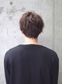 マッシュベースのレイヤースタイル。耳周りはすっきりして前髪は長め。スロントに動きがあるニュアンススタイルです。ゆるくパーマをかけてシルエットをコントロールしています。