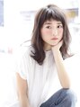 ショートバングがオシャレなロブ。ローレイヤーをベースに顔周りを包み込むようにカットして小顔効果とゆれる毛先を創ります。光に透けるグレージュで透明感をプラス。やわらかい髪を演出する大人スタイルです。