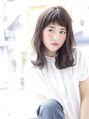 ショートバングがオシャレなロブ。ローレイヤーをベースに顔周りを包み込むようにカットして小顔効果とゆれる毛先を創ります。光に透けるグレージュで透明感をプラス。やわらかい髪を演出する大人スタイルです。