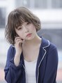 アゴラインのボブスタイル。内巻きと外はねのミックスでパーマをかけて毛束をランダムに動かし、束感をキレイに作りました。カラーはマットベージュで外国人風に、お手入れ簡単な可愛らしいボブスタイルです。