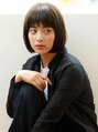 シンプルな前下がりストレートボブ。厚めバングで目力アップを狙いました。カラーはダーク系にすることでスタイリッシュな仕上がりに。オイルトリートメントをつけてブロー。髪質に合わせたワックスでタイトに仕上げれば完成。