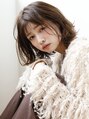 レイヤーボブにオン眉が大人可愛いスタイル。ランダムに巻いたパーマを根元から散らして乾かし、ヘアバームでツヤ感を出して仕上げます。