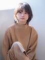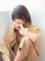 顔まわりを包み小顔にみえるミディアムスタイル。深めの前髪でトップに高さが出るようにしてひし型シルエットに。スタイリングはポリッシュオイルを全体になじませて束感をつくり前髪はコームでとかします。
