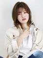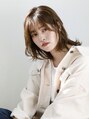 鎖骨下のミディアムベース。顔まわりと表面にレイヤーを入れて動きをプラス。カラーはイルミナベージュで透明感を演出。ヘアアイロンでベースを外ハネにし、表面は内巻きにします。少量のバームを馴染ませて完成です。