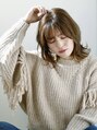 鎖骨下のミディアムベース。ふんわり仕上がる様にドライカットで質感調整しました。カラーはイルミナカラーで透け感をプラス。ヘアアイロンでベースを外ハネにし、表面は内巻きにします。少量のオイルを馴染ませて完成です。