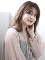 鎖骨ラインのセミディをベースに、トップにレイヤーを入れて女性らしい丸みをプラス。イルミナカラーのベージュで柔らかさを演出。全体の毛先をコテで巻いてラフに散らして仕上げます。