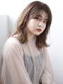 鎖骨ラインのセミディをベースに、トップにレイヤーを入れて女性らしい丸みをプラス。イルミナカラーのベージュで柔らかさを演出。全体の毛先をコテで巻いてラフに散らして仕上げます。