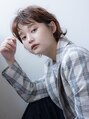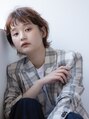眉上で透け感のある前髪がポイントのウルフスタイル。カラーはオレンジページュで女性らしい柔らかな質感に仕上げました。