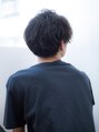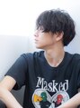 前髪が長めのパーマスタイル。束感が出やすくなるようにカットし、無造作感を出すためにゆるくパーマをかけてあります。スタイリングはパーマを綺麗にだすために少し髪を濡らしてからワックスをなじませ仕上げます。