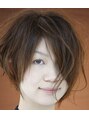 ベースは丁度イイ重さに少しアシンメトリーの前下がりのボブです。顔周りを軽くし、引き締めて卵型シルエットを強調できるようにしまた。カラーは、スモーキーブラウンに カッパーをプラスしたものをベースにハイ&ローライトを入れて柔らかさと動きを強調
