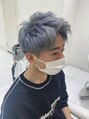 ツーブロックにバックは刈り上げでさっぱりショート。アイロンいらずのセットはアップバングで楽です!カラーはシルバー系のプラチナムシルバーカラー。色落ちしても紫シャンプーで黄色味を消してあげると、透明感あるカラーが、楽しめます!