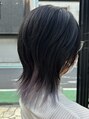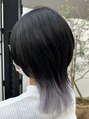 ダークトーンの中に仕込んだホワイト系インナーカラー。しっかり透明感を出すためブリーチは2回以上。黄ばみを削って、クリアでやわらかいホワイトに仕上げています。光の当たり方や動きでシルバーっぽく見えたり、ミルキーに透けたりするのもポイント。