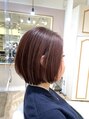 お手入れしやすいショートボブスタイル。ブラッシングでまとまり、スタイリングも楽に出来るヘア。ピンクブラウンで艶やかな髪に。