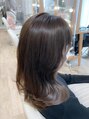 柔らかい質感のラベンダーグレージュカラー。毛先はおもための質感にして巻いた時にちゅるんとツヤが出るように。