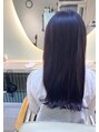 しっかり青みパープルを入れた暗髪カラー♪深めの色を足すことでぱっと見は黒っぽいカラーに見えるので、暗くしなければいけないけどオシャレを楽しみたい人などにもおすすめです♪
