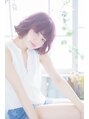 スッキリ見えるボブスタイル。ピンク系のカラーで可愛らしい印象に。 柔らかめのワックスやトリートメントをつけて束感や無造作感を。