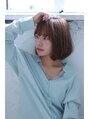 顎下ラインの前下がりボブで小顔効果を。ナチュラルワンカールでふんわり感を出して、柔らかい印象に。
