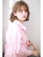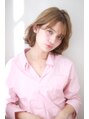 明るめのベージュカラーで透明感を。毛先は外ハネで動きを出して全体的に動きのあるボブスタイルに。